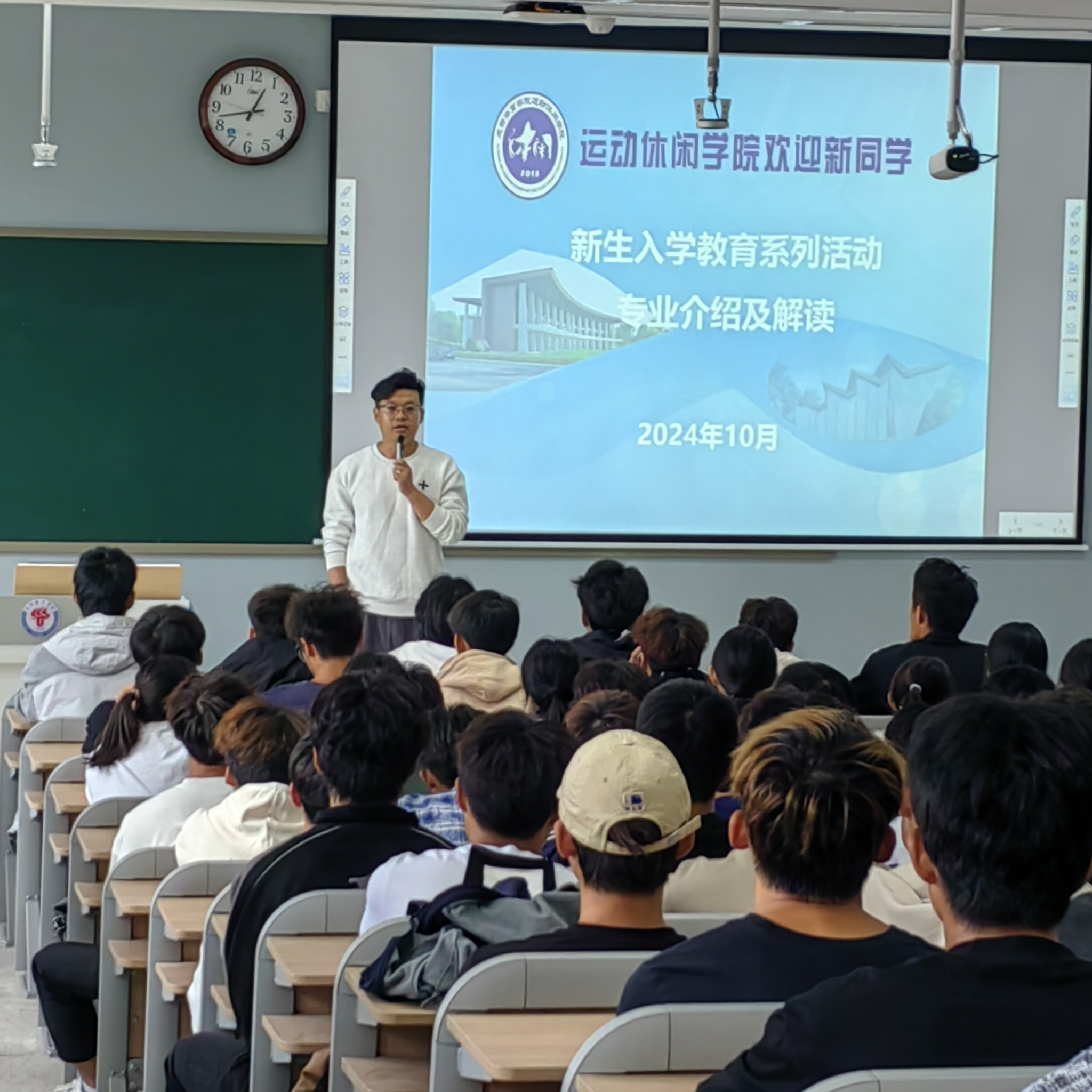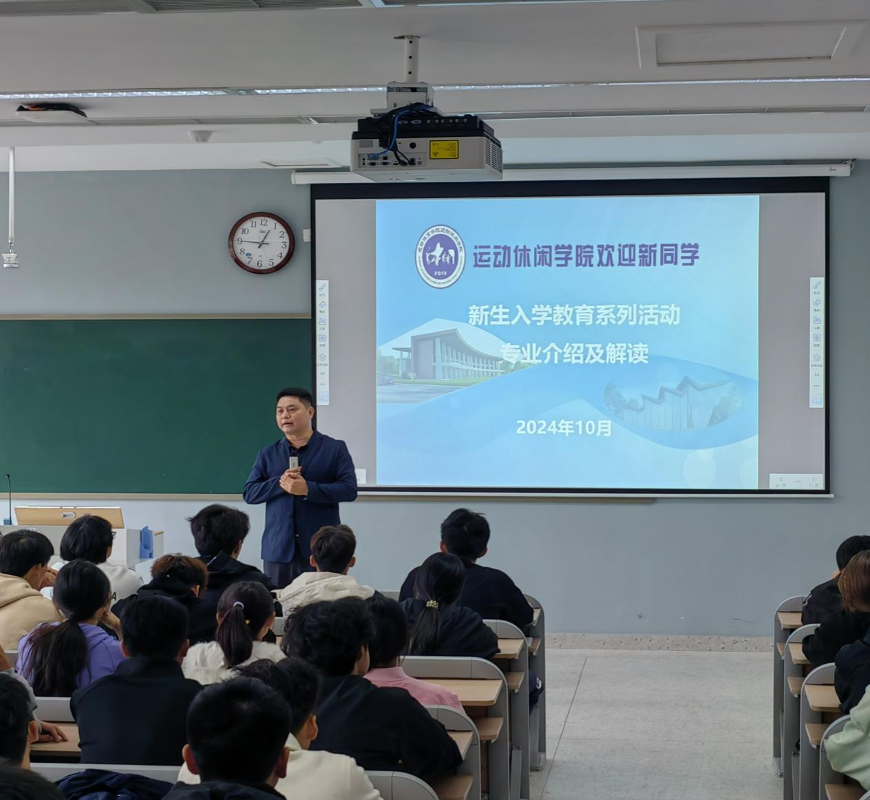 10月10日,澳门十大网投平台排行举行了2024级休闲体育专业和社会体育管理与指导专业,入学教育系列讲座之专业介绍及解读,澳门十大网投平台排行副院长蒋书君担任主讲人,学生管理办公室主任耿松主持会议。