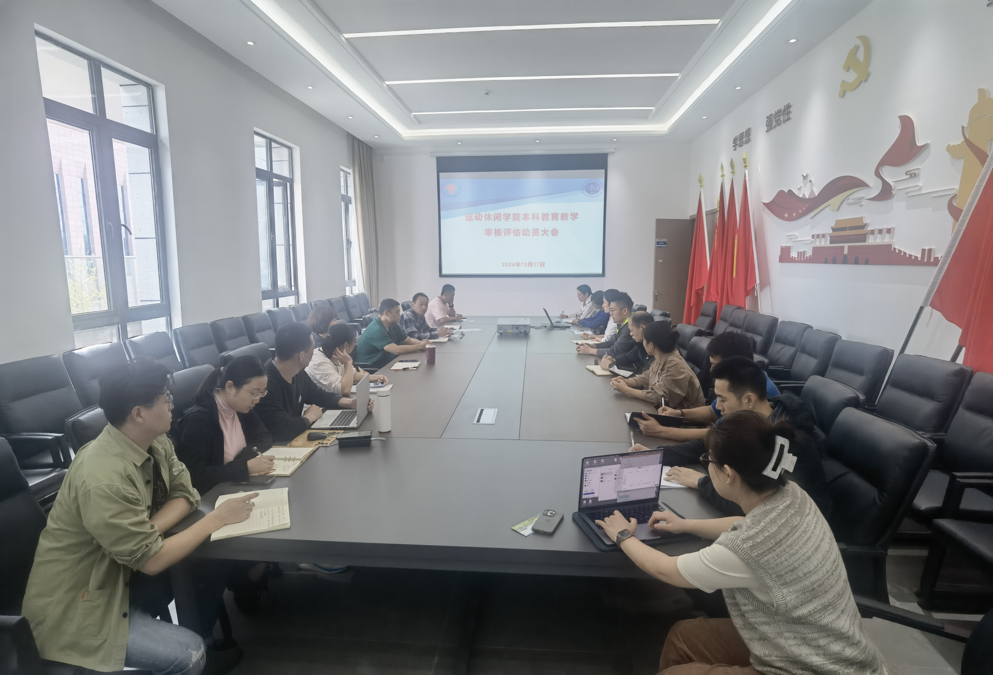 2024年10月17日,澳门十大网投平台排行在运动休闲馆三楼会议室组织召开本科教育教学审核评估动员大会。会议由院长曾洪林主持,学院全体教师参会。此次动员会旨在进一步提升学院全体教师对即将到来的本科教育教学审核评估工作的认识与准备,确保评估工作的顺利进行。