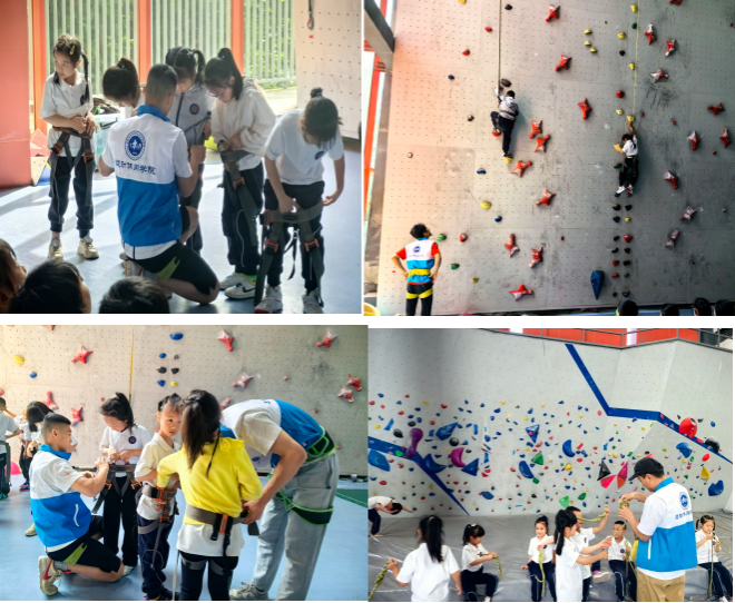 小朋友们每天在我院教师党员朱昌华和志愿者们的带领下进行攀岩体验。在体验攀岩的过程中,小朋友们都体现出对攀岩运动的喜爱和自身坚强的品质。同时志愿者们在小朋友体验的过程中都认真负责的对小朋友们进行着指导和安全保护。