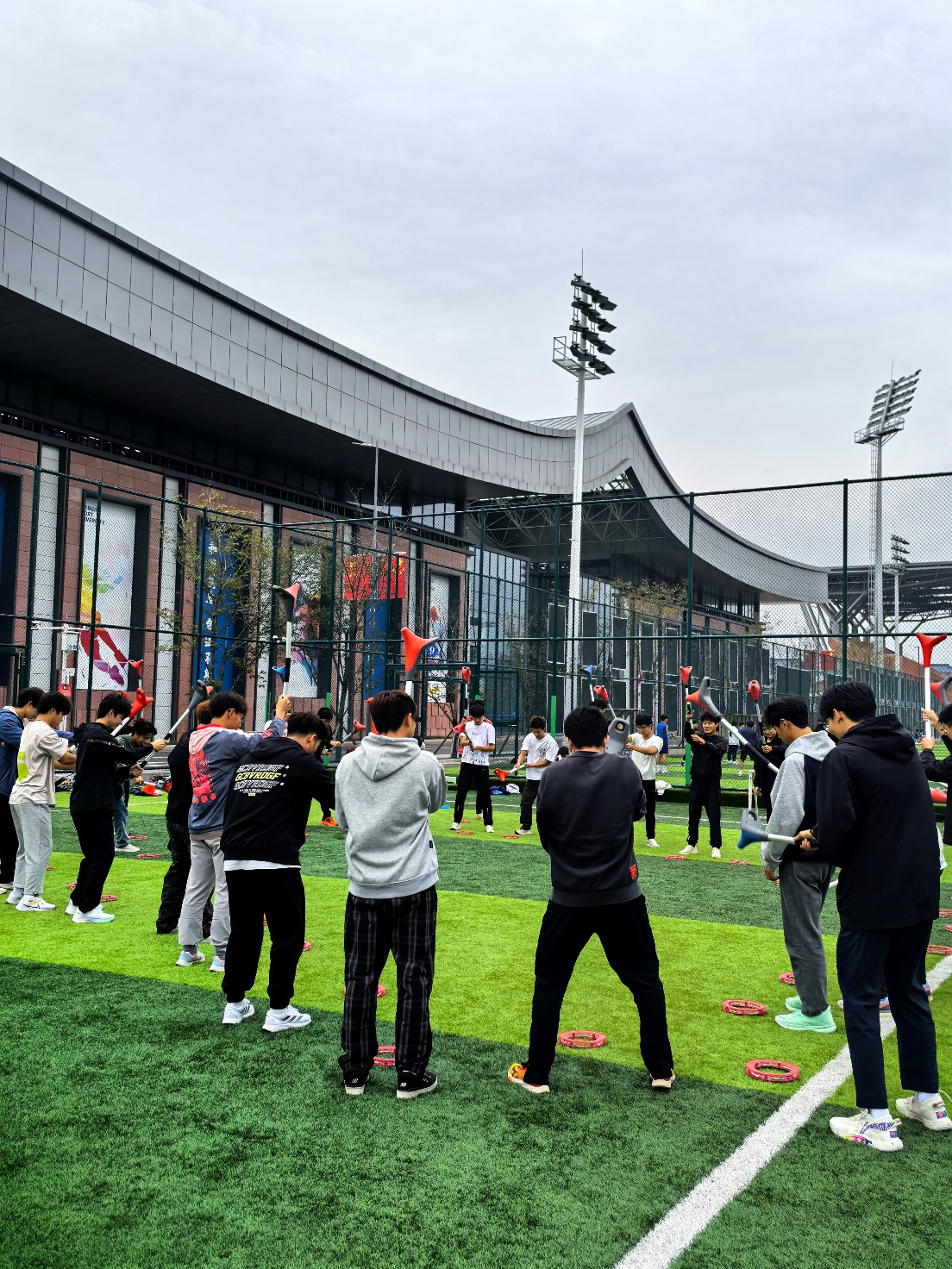 面对新奇而有趣的新项目,同学们热情高涨。在开始之前,教练为同学们详细介绍了YOU.FO飞环运动的起源,规则和技巧。教练介绍,YOU.FO创新飞环运动不仅考验着参与者的反应速度和手眼协调能力,更注重团队协作和策略运用,是一项集竞技性、娱乐性和健身效果于一体的优秀运动项目。同学们在教练的指导下,纷纷拿起特制杆,尝试接发圆环,现场充满了欢声笑语。他们不仅体验到了飞环运动的乐趣,更在团队协作中培养了默契和友谊。
