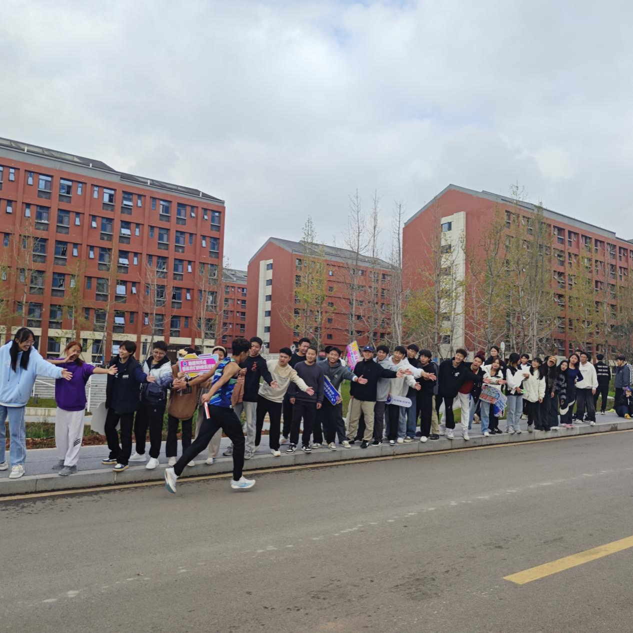 赛场上,参赛者们展现出了坚韧不拔的毅力。他们迈着矫健的步伐,从起点出发,沿着精心规划的环校路线奔跑。有年轻的学子,为挑战自我而战;也有热爱运动的教职工,用奔跑诠释对生活的热爱。他们的汗水挥洒在跑道上,无论是领先的选手,还是在队伍中坚持的参与者,都怀揣着梦想和热情,向着终点前进。而志愿者们,无疑是这场赛事中温暖的存在。他们早早地来到赛场加油点,准备物资、维持现场秩序。在比赛过程中,他们分布在各个加油点,为参赛者递上饮用水和能量补给,用微笑和鼓励为选手们加油。当有参赛者出现不适时,医疗志愿者迅速反应,提供专业的救助。他们就像赛道上的守护天使,默默付出,保障赛事的顺利进行。