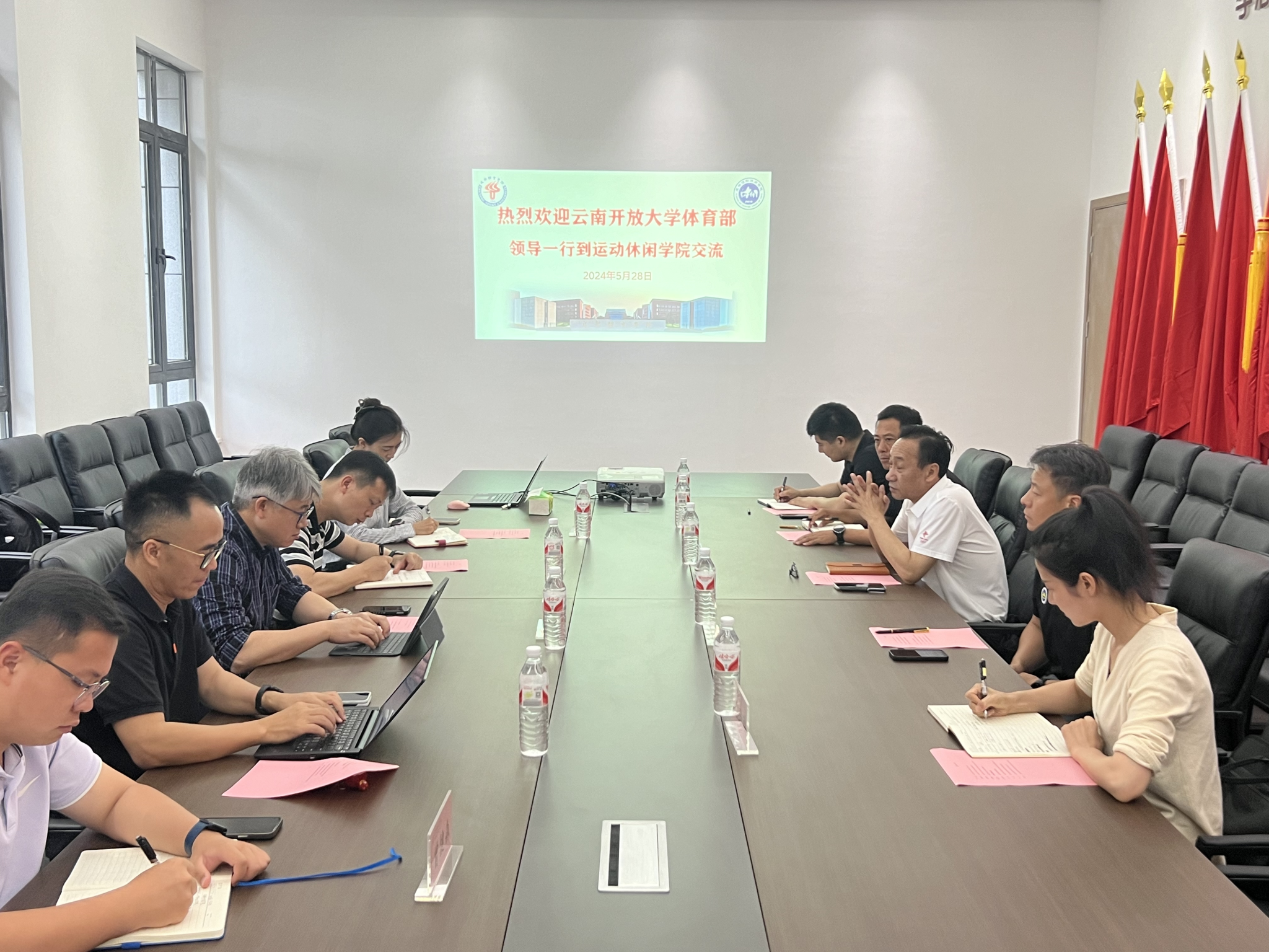 5月28日上午,云南开放大学体育部李晓主任、张晓峰副主任等一行5人到澳门十大网投平台排行交流访问,院长曾洪林、各系、研管办、院办相关人员参会。