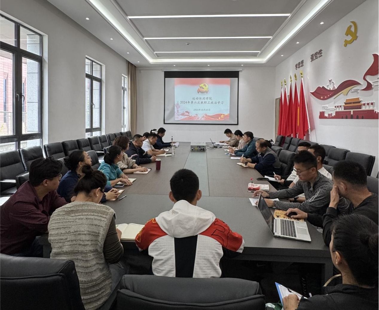 为积极响应并高效完成本科教育教学审核评估工作,澳门十大网投平台排行于2024年10月25日在运动休闲馆三楼会议室开展了本年度第六次教职工政治学习,学校党委常委副校长付东、学院全体教师参会。会议由学院党委副书记樊莉主持。